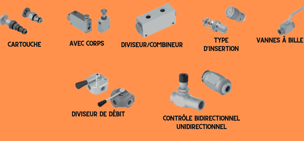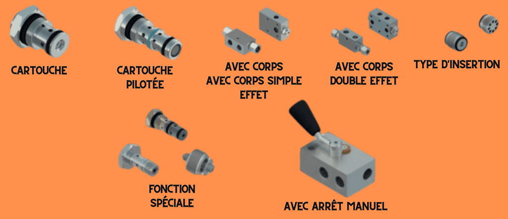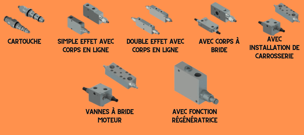 Montage : type cartouche, en ligne ou à bride, type simple ou croisé.