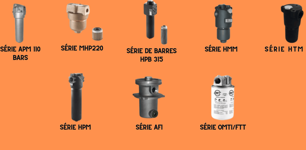 La gamme de filtres s'adapte aux conduites de retour des circuits hydrauliques (pressions jusqu'à 20bar), aux conduites d'aspiration et aux conduites moyenne et haute pression (100/480bar). Ils peuvent être équipés d'accessoires tels que des indicateurs différentiels, visuels et électriques de colmatage, des manomètres, des pressostats, des vannes by-pass, etc.