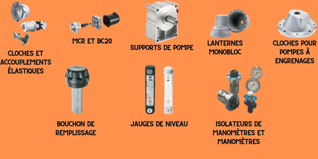 Les accouplements pour pompes et engrenages sont en acier et aluminium, normaux et 90°.