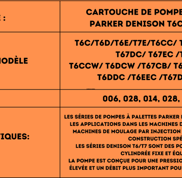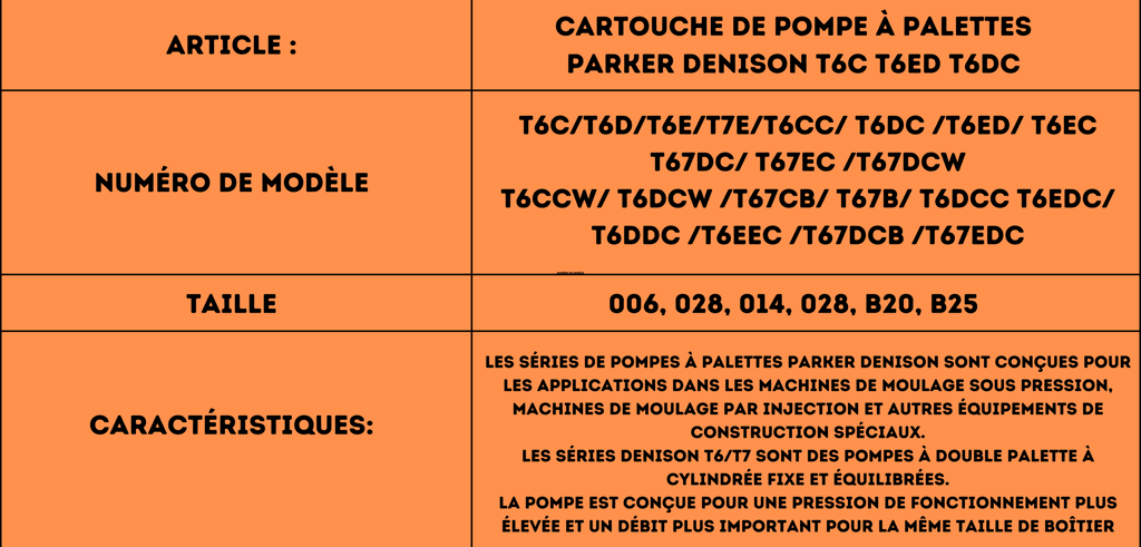 Cartouche de pompe à palettes Parker Denison T6C T6ED T6DC
