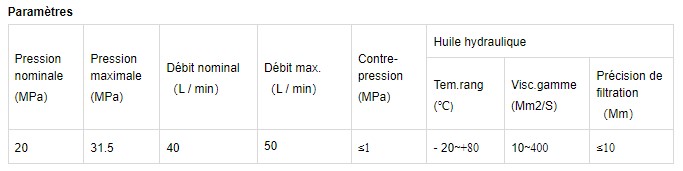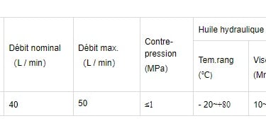 Viscosité : 10-100 cSt (Une huile hydraulique à base minérale de 46 cSt est recommandée, peut varier selon les climats)