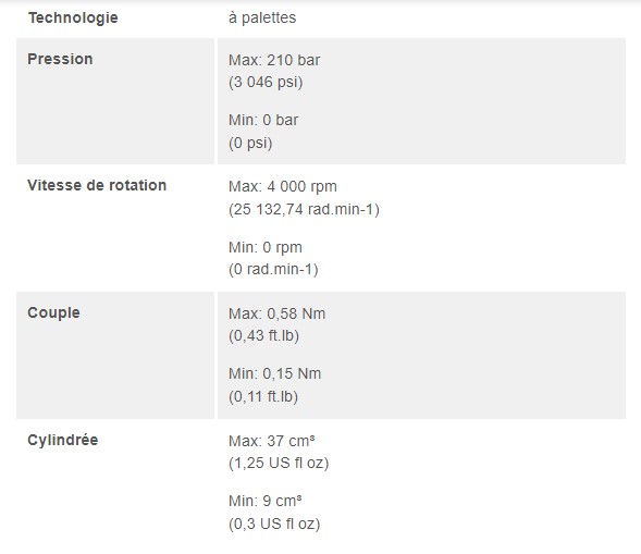 Max. Displacement (in³/rev) : 0.56 - 2.26